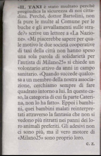 Un taxi, Milano 25, ambasciatore di Firenze per i bambini